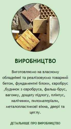 Підприємство має бетонний вузол, де виготовляє блоки, бетон М100/300.