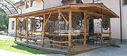 Поряд з будинком дві альтанки з мангалом. ![]() В окремому будинку сауна. Опалення: автономне водяне. Водопостачання: холодна та гаряча постійно. Номери:
