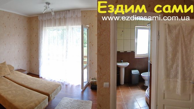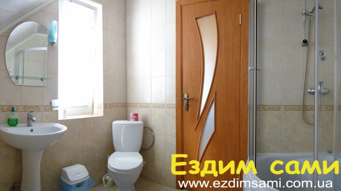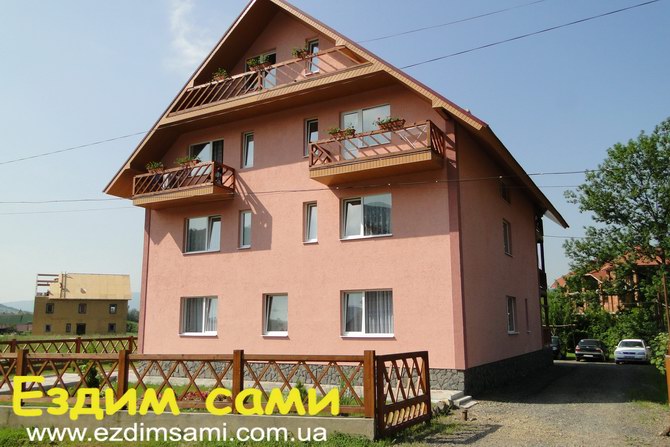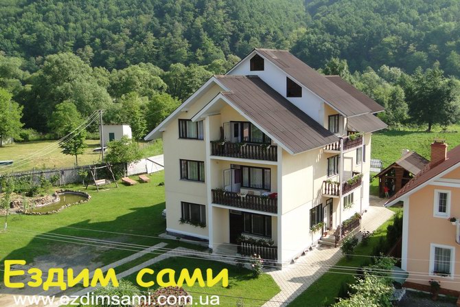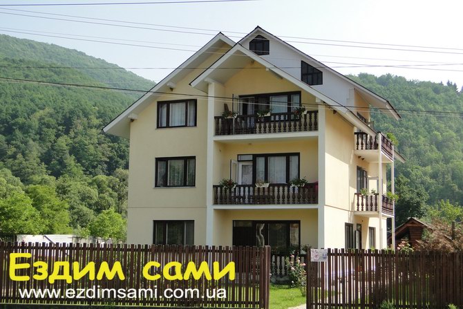 Другий поверх: вітальня (телевізор, холодильник, електрочайник, праска, гладильна дошка), три кімнати: одна 3-місна (три розкладні дивани, шафа для одягів), дві 2-місних (двоспальне ліжко, шафи для одягу), санвузол (туалет, умивальник, душова кабіна).