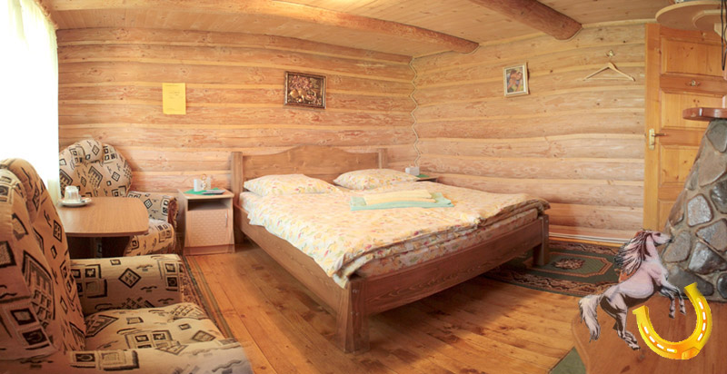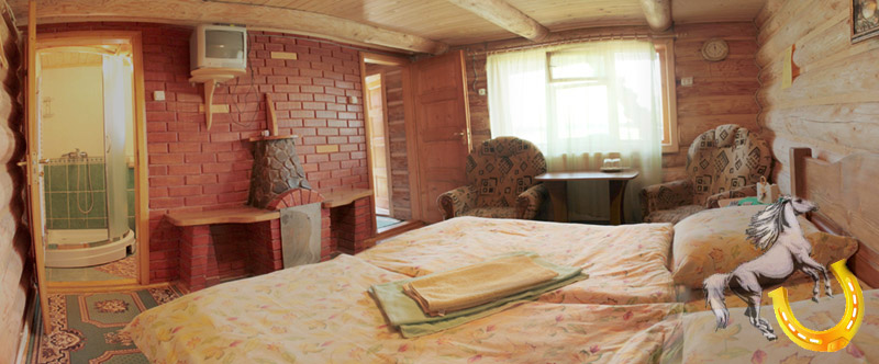 Тепле вогнище каміну у дерев'яних будиночках зігрівають вечорами, а ласкаві ранкові промені сонечка запрошують прогулятися по території туристичної бази "Золотої Підкови".