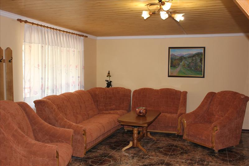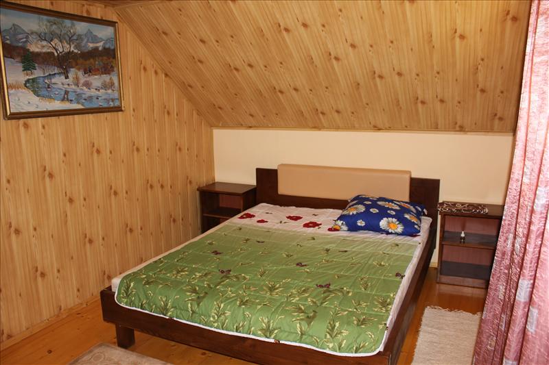"Лісова Садиба" - це двоповерховий будинок. На першому поверсі розташовані – хол з каміном (м'яка частина, спутникове ТВ), кухня (холодильник, посуд, мікрохвильова піч, електрочайник ) та санвузол (душова кабіна, вмивальник , туалет). Також є тераса, де можна не тільки снідати, але і проводити тихі вечори на м'яких кріслах. На другому поверсі знаходяться дві окремі спальні кімнати з додатковими місцями: перша кімната 2+1+1, друга кімната 2+1. В кожній із кімнат є суцільне двоспальне ліжко.