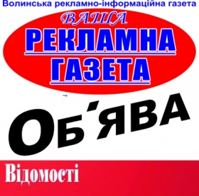 Ваша рекламна газета, Об'ява, Відомості (Центр прийому оголошень)рекламно-інформаційні газети Луцьк, Рівне, Волинська обл.