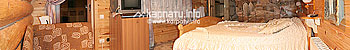 На першому поверсі — вітальня-їдальня з каміном та невеликим штучним водоспадом, сауна, на другому — номери, на третьому (мансардному) — хол з диваном та телевізором. Біля котеджу — винний погріб, колиба.
