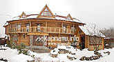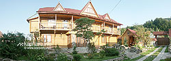 Дерев'яний триповерховий котедж на 6 номерів (14 місць): двомісний, тримісний, 3 півлюкси та люкс.