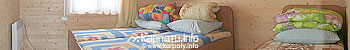 На другому поверсі — тримісна кімната (3 односпальні ліжка, вішалка для одягу, телевізор). Опалення: електричні конвектори.