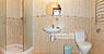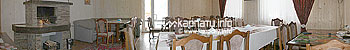 На першому поверсі — хол, обідній зал з каміном (диван, телевізор), санвузол.