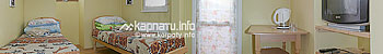 Сімейний (5 номерів) — в одній кімнаті — двоспальне ліжко, стіл, телевізор, у другій — розкладний диван або 2 односпальні ліжка, стіл, вішак для одягу, санвузол (душова кабіна, туалет, умивальник). У деяких номерах є балкон.