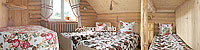 На другому поверсі (окремий вхід) — хол, 2 двомісні номери (2 односпальні ліжка, шафа для одягу, в одному номері є додаткове місце — двоярусне ліжко), тримісний номер (3 односпальні ліжка, шафа для одягу), санвузол (душова кабіна, туалет, умивальник). У кожній кімнаті можливе додаткове місце — односпальне ліжко.