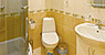 В цоколі є номер стандарт (2 односпальні ліжка, шафа для одягу, телевізор, стіл, санвузол — душова кабіна, туалет, умивальник).