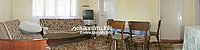 У будинку — кухня (газова плита, холодильник, електрочайник, посуд, мийка), вітальня (м'який куток, шафа для одягу, стіл зі стільцями), чотиримісна кімната (2 розкладні дивани, стіл зі стільцями, телевізор), двомісна кімната (2 односпальні ліжка, шафа для одягу), санвузол (душова кабіна, туалет, умивальник).