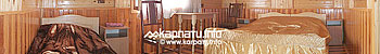 Дво-, три-, чотиримісні — односпальні ліжка, вішалка для одягу, стіл зі стільцями, санвузол (туалет, умивальник). Душ — на поверсі.