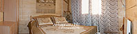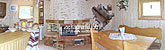 На першому поверсі — простора кухня-їдальня (мікрохвильова піч, електрочайник, холодильник, необхідний посуд, стіл на 12 осіб), 2 двомісні номери (двоспальне ліжко, шафа для одягу, телевізор), санвузол (туалет, умивальник, душ, біде). На другому поверсі — 4 двомісні номери (двоспальне або односпальні ліжка, шафа для одягу, телевізор, балкон), санвузол (туалет, умивальник, душ, біде). В одному з номерів — двоспальний розкладний диван. Опалення: електричні конвектори.
