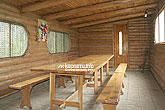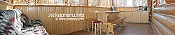 На першому поверсі — веранда (розкладний диван, стіл з лавками), сауна.