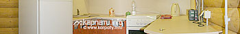 На першому поверсі — вітальня з каміном (розкладний диван, телевізор, обідній стіл), кухня (газова плита, холодильник, мийка, необхідний посуд, електрочайник, мікрохвильова піч), санвузол (душова кабіна, туалет, умивальник).