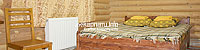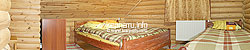 На першому поверсі — двомісна кімната (двоспальне ліжко, вішалка для одягу), тримісна кімната (двоспальне і односпальне ліжка, комод, камін), 2 санвузли (душ, туалет, умивальник).