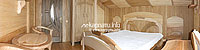 На першому поверсі — спальня (двоспальне і односпальне ліжка, шафа для одягу, телевізор), їдальня, кухня (газова плита, кухонне вогнище, мікрохвильова піч, холодильник, електрочайник, необхідний посуд), санвузол (ванна, душова кабіна, біде, туалет, умивальник, пральна машина). На другому поверсі — 4 спальні (двоспальне ліжко, шафа для одягу, телевізор, балкон), роздільний санвузол (душова кабіна, біде, туалет, умивальник і туалет, умивальник).