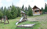 Колиба-їдальня, відкритий басейн, дитячий басейн (підігрів басейнів), дитячий майданчик, гірськолижний витяг, велика власна територія, пасіка, поруч ліс. Опалення: автономне водяне в кожному котеджі.