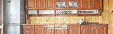 На першому поверсі — кухня (газова плита, холодильник, мікрохвильова піч, електрочайник, необхідний посуд).