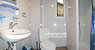 На першому поверсі — вітальня (стіл зі стільцями, дошка для прасування, праска), кухня (електроплита, електрочайник, необхідний посуд), санвузол (душова кабіна, умивальник, туалет, пральна машина).