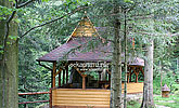 П'ятиповерховий готель на 13 номерів (27 місць), рецепція з холом, зал для відпочинку, колиба, сауна, дитячий майданчик.