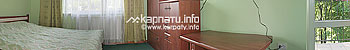Двомісний — двоспальне ліжко, шафа для одягу, дзеркало, стіл, телевізор, санвузол (душова кабіна, туалет, умивальник). Один номер є більший за площею (додаткове місце — розкладний диван), а в двох номерах є розкладне крісло.