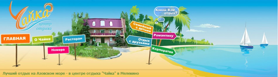 Центр отдыха «Чайка» расположен на самом берегу Азовского моря в пос. Мелекино. Пляж здесь песчано-ракушечный. Морское побережье мелкое и вода быстро прогревается. Воздух насыщен кислородом, мельчайшими частицами хлористого натрия, брома и йода.