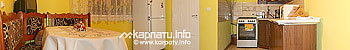 Поруч — потічок, річка, ліс. На поверсі — 2 двомісні кімнати (в одній — двоспальне ліжко, телевізор, дитяче ліжечко, шафа для одягу, в іншій — диван, 2 крісла, камін на дровах), тримісна кімната (2 дивани, телевізор, 2 крісла, шафа для одягу, стіл зі стільцями на 6 осіб), санвузол (ванна, умивальник, туалет). У цокольному приміщенні — кухня (газова плита, холодильник, мікрохвильова піч, електрочайник, кавоварка, столовий та кухонний посуд). Є можливість додаткових місць — розкладні ліжка.