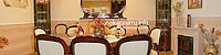 На першому поверсі — їдальня (обідній стіл, камін), кухня (газова плита, мікрохвильова піч, холодильник, електрочайник, кавоварка, посуд, мийка), 2 спальні (в одній — двоспальне ліжко, шафа для одягу, телевізор, дитяче ліжечко, в іншій — односпальне ліжко, шафа для одягу, телевізор, комп'ютер), санвузол (ванна, туалет, умивальник).