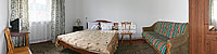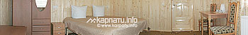 Економ — двоспальне ліжко (у тримісному є також розкладний диван), шафа для одягу, телевізор. На другому поверсі — 2 стандарти (двоспальне ліжко, шафа для одягу, телевізор, стіл, електрочайник, санвузол — душова кабіна, туалет, умивальник), 4 двомісні економи (двоспальне або 2 односпальні ліжка, шафа для одягу, телевізор, додаткове місце — розкладне крісло), тримісний економ (двоспальне і односпальне ліжка, шафа для одягу, телевізор), 2 санвузли (душова кабіна, туалет, умивальник; туалет, умивальник). На кожному поверсі є холодильник, електрочайник, посуд.