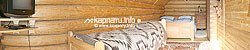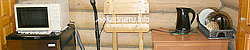 На першому поверсі — вітальня з каміном (розкладний диван, телевізор, обідній стіл, кухонний куток — електрична плита, холодильник, електрочайник, посуд), сауна, роздільний санвузол (душ; туалет, умивальник).