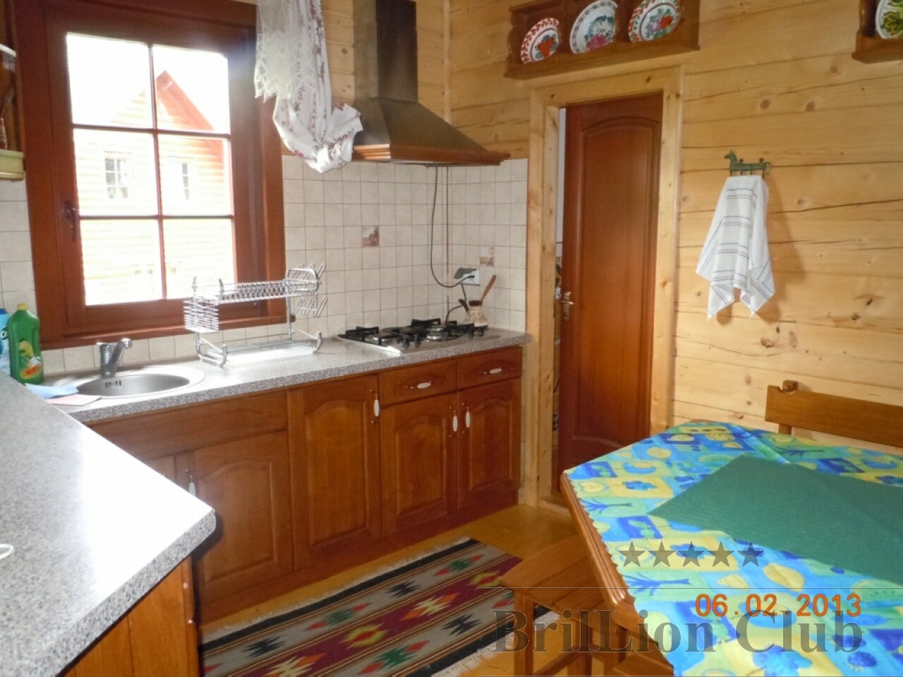 На першому поверсі — обладнана кухня (холодильник, газова плита, мікрохвильова піч, електрочайник, кавоварка, необхідний посуд), вітальня з каміном (обідній стіл, телевізор), санвузол (душова кабіна, умивальник, туалет).