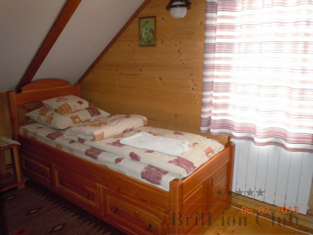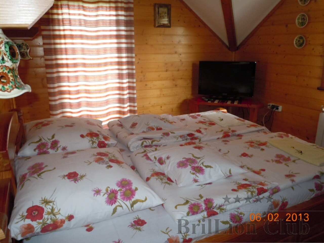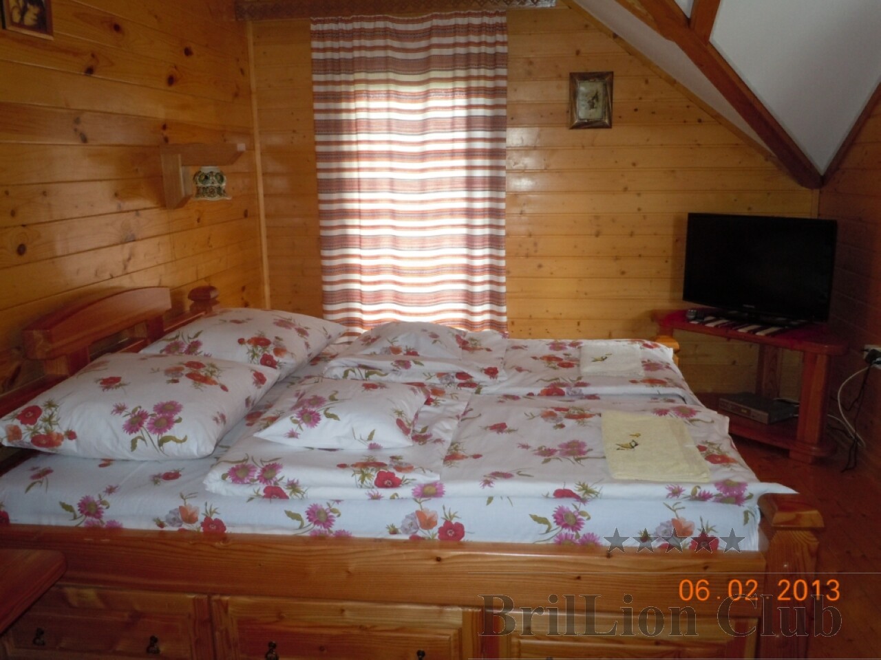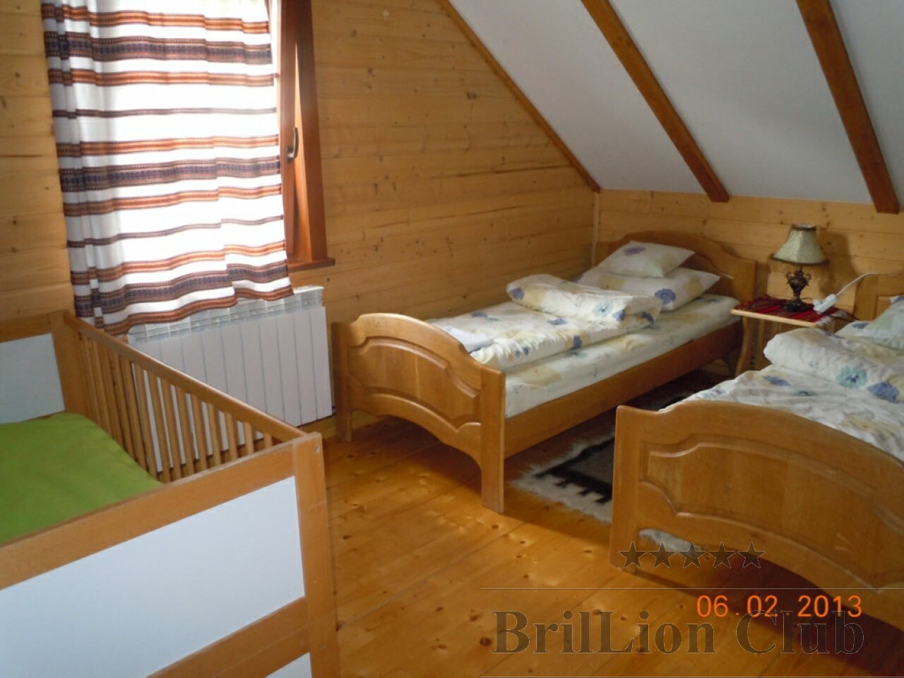 На другому поверсі — 3 двомісні кімнати (двоспальне або 2 односпальні ліжка, в одній з кімнат є телевізор), 2 одномісні кімнати (односпальне ліжко), санвузол (душова кабіна, туалет, умивальник). В одній з двомісних кімнат є дитяче ліжко.