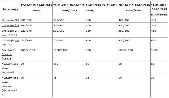 * додаткове місце - дитина (віком 4-12 р.) 60 75 25 60 30