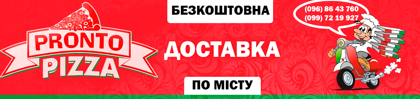Шановні клієнти, “Пронто Піца” здійснює доставку замовленнь за вказаною Вами адресою. Замовлення на доставку можна зробити за телефонами: (099) 72 19 927 та (096) 86 43 760. Приймаємо замовлення з 11.30 до 21.30 год., неділя з 12.00 до 21.30 год. Ми в соц мережах МЕНЮ