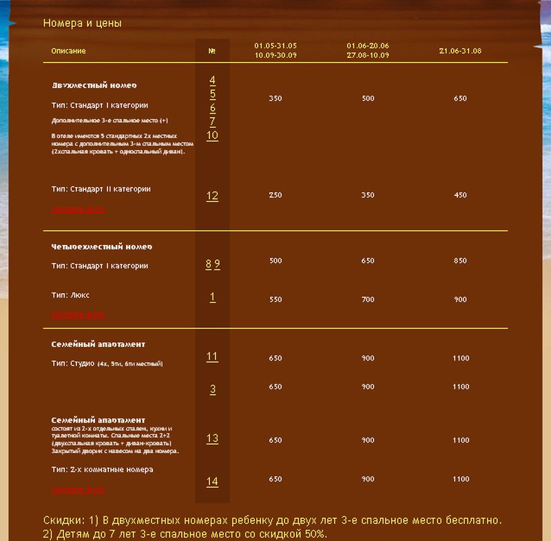 Все номера оборудованы сплит-системами, туалетными комнатами со всеми удобствами, телевизорами, холодильниками, современной мебелью. Каждый номер имеет свою террасу.