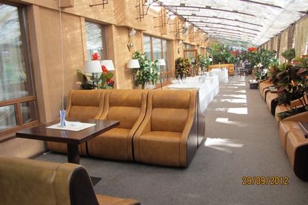 Шеф-кухар рекомендує неодмінно спробувати каре телятини з гарніром аджаб-сандал (замареноване м'ясо в суміші грузинських спецій, трав, грецьких горіхів) або м'ясо і овочевий гарнір аджаб-сандал (помідор, перець, баклажан, цибуля), що готується на мангалі.