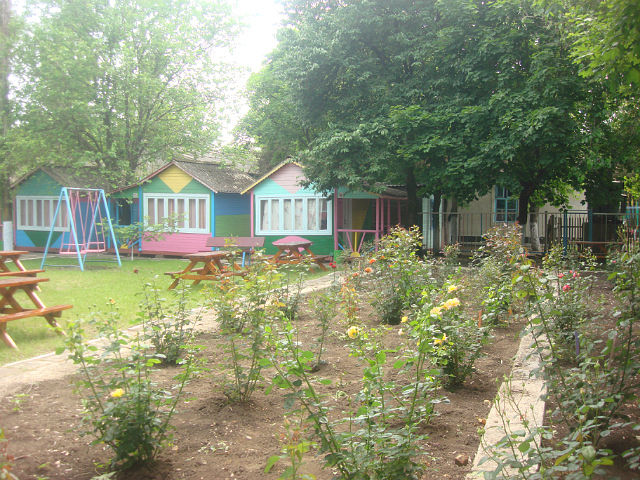 На территории много скамеечек, беседок, есть детская площадка, парковка для автомобилей.