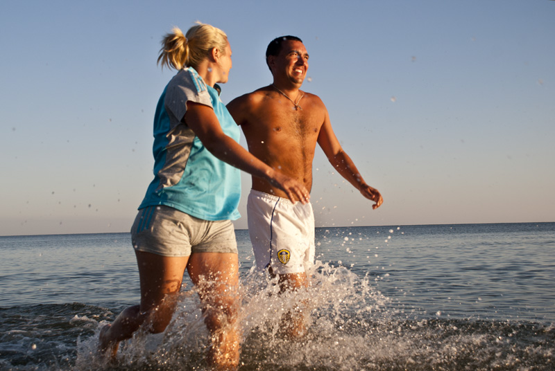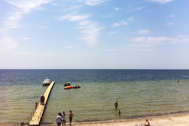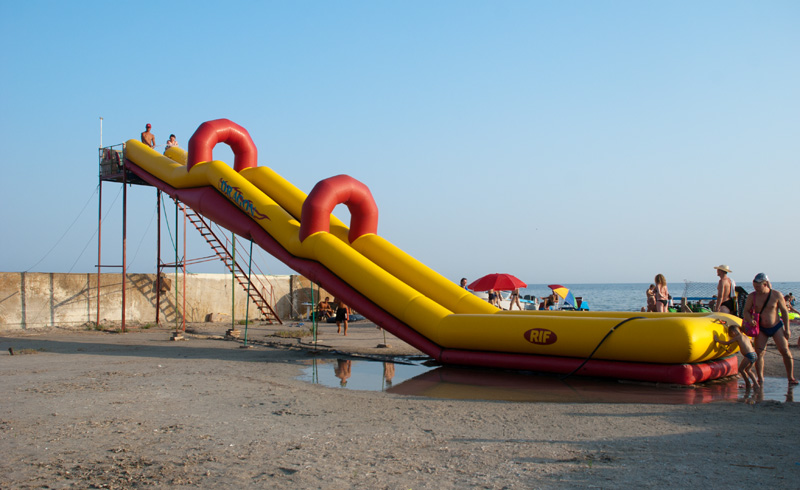 Вас ожидает немноголюдный песчаный пляж, кристально чистая вода. Это райский отдых для семей с детьми: мелководье, песчаный пляж, теплая вода, отсутствие волн. Пляж, оборудованный теневыми навесами, зонтиками, шезлонгами, кабинками, торговыми точками, туалетом и медпунктом. Гости пляжа склонны к бесконечному принятию водных и солнечных процедур. Иногда хочется чего-нибудь еще. Водные развлечения и горки, летний бар с холодными напитками, расположенные прямо на пляже не дадут скучать ни детям, ни их родителям.