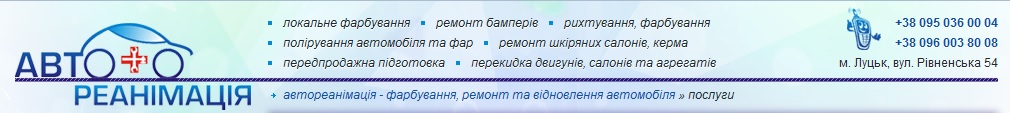 На ТОВ «Автореанімація» ми розуміємо всю проблематичність наслідків аварійних ситуацій, тому за бажанням зможемо провести, в тому числі і косметичний ремонт авто. Природно рихтування автомобіля відбувається мінімально можливі терміни, тому що ми знаємо що для наших клієнтів автомобіль часто один з основних інструментів соціальної активності. Хто зрозуміє автомобіліста краще таких же, як він? Рихтування автомобіля може бути виконана кількома способами, ми підберемо максимально підходящий спосіб для вашого автомобіля, здійснюючи таким чином скорочення часу і збільшення ефективності послуг ТОВ «Автореанімація».