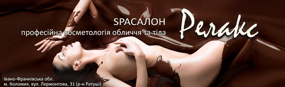 Ці і багато інших дрібниць були ретельно вивчені та відпрацьовані, щоб кожна людина завітавши один раз до нас відчула себе VIP клієнтом! Відвідавши нас, Ви будете приємно здивовані, що не треба їхати далеко в світ, щоб отримати SPA процедури до яких ми так привикли під час відпочинку в гостях Турції… Ви зможете побавити себе на процедурі «арома-терапія» (пілінг тіла з арома маслами, релаксуючий масаж на гарячих арома-маслах «пачулія-лаванда» привезених спеціально для наших клієнтів з Ізраїлю… а для самих вибагливих клієнтів ми пропонуємо спробувати процедуру «шоколадне обгортування boynti», «шоколадна ейфорія», та стоун-терапія (релаксуючий масаж з гарячим камінням)… мерехтіння свічок у напівтемряві, неголосні переливи спокійної музики, приємний аромат масел східних країн, все це під час шоколадної процедури віднесе Вас в ту незабутню атмосферу в яку Вам захочеться повертатись знову і знову… такі хвилини не залишать без позитивних емоцій навіть саму спокушену людину…) Такі процедури можуть бути незабутнім подарунком для самої близької Вам людини, яка після цього обов'язково скаже Вам «у мене все в шоколаді!» Ми також раді Вам запропонувати великий вибір догляду за обличчям, шиї та декольте. Професіоналізм і стаж роботи косметологів SPA салону «Релакс» дозволяє вирішувати ряд естетичних проблем починаючи з апаратних чисток обличчя, усування вугрової висипки та розкішного шовкового догляду з 40-хвилинним ліфтинг-масажем… до складних процедур таких як: • ботулінотерапія; • мезотерапія; • біоревіталізація; • дермаобразії; • хімічні (серединні) пілінги; • філери (контурна пластика); Кожний клієнт нашого салону може отримати кваліфіковану консультацію про ту чи іншу процедуру, а також отримати індивідуальний підбір кремів та продукцію використання для домашнього догляду. В косметології використовуються відомі брендові професійні марки: «Christina», «Anna Lotan», «renew», «GI-GI» (виробництво Ізраїль). SPA салон «Релакс» чекає на Вас: Ми працюємо з 10-00 до 22-00 (неділя вихідний)