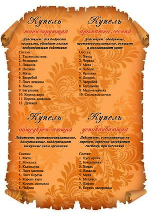 Приготовление целебного «вкусного пара» в парной с использованием морской соли, свежей хвои, сена из летнего разнотравья, ржаной соломы, душистых трав, цветов, корневых эфирных масел, смол, пива, кваса, прополиса, отваров и спиртных настоек ароматических растений;